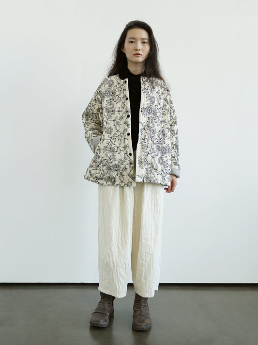 Leafy Textured Cotton Outer Coat with Ribbon