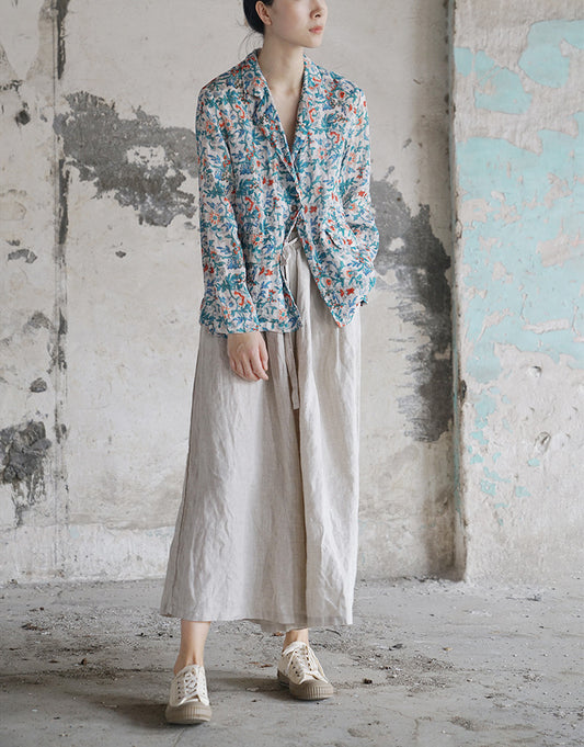 Blue Printed Linen Pants
