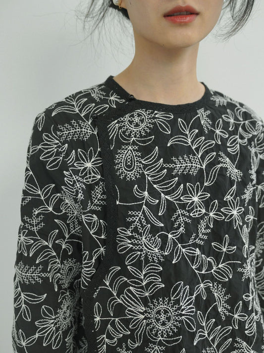 Black Embroidered top with Lace Collar