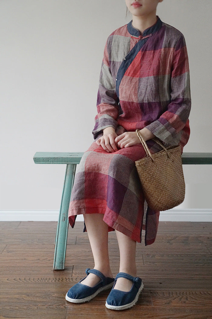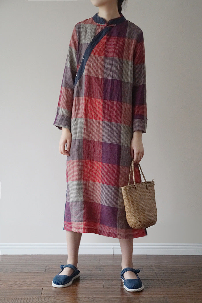 Checked Cheongsam Dress