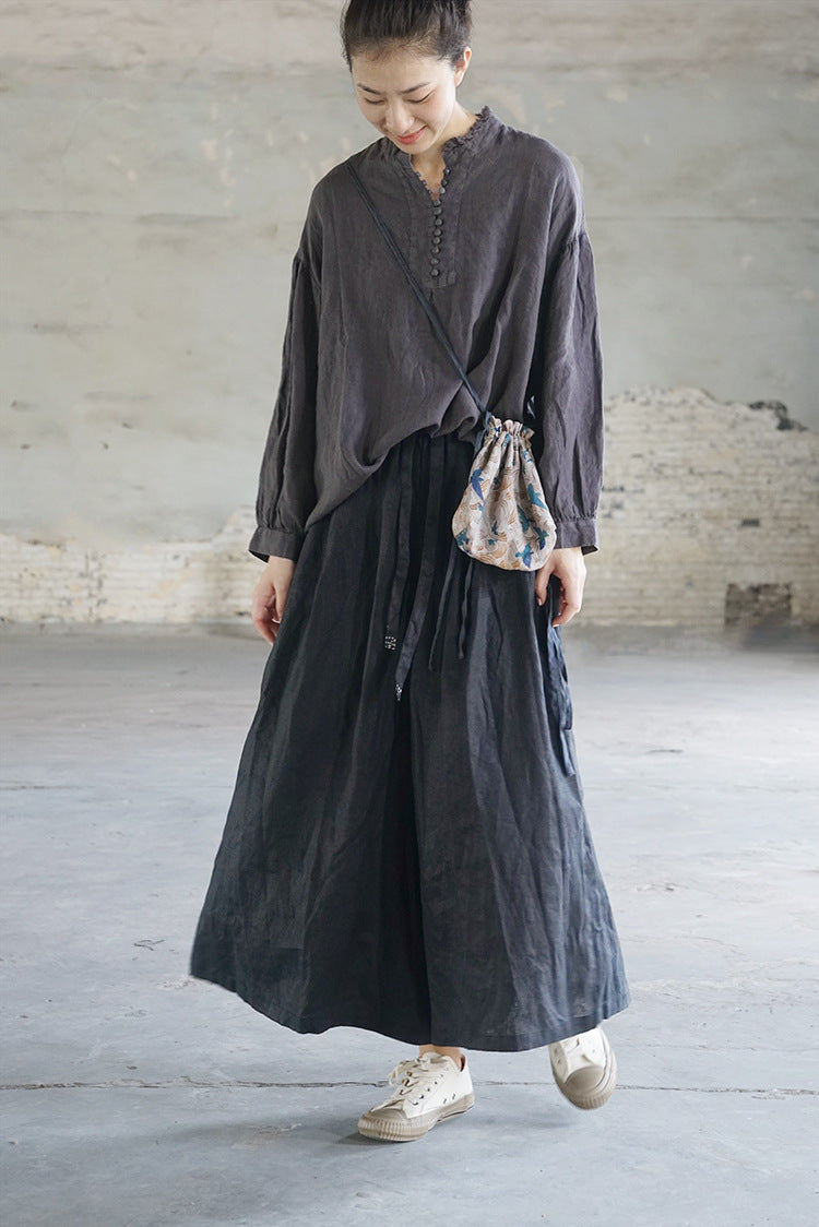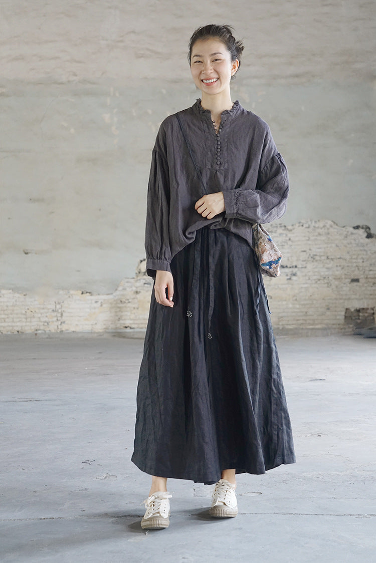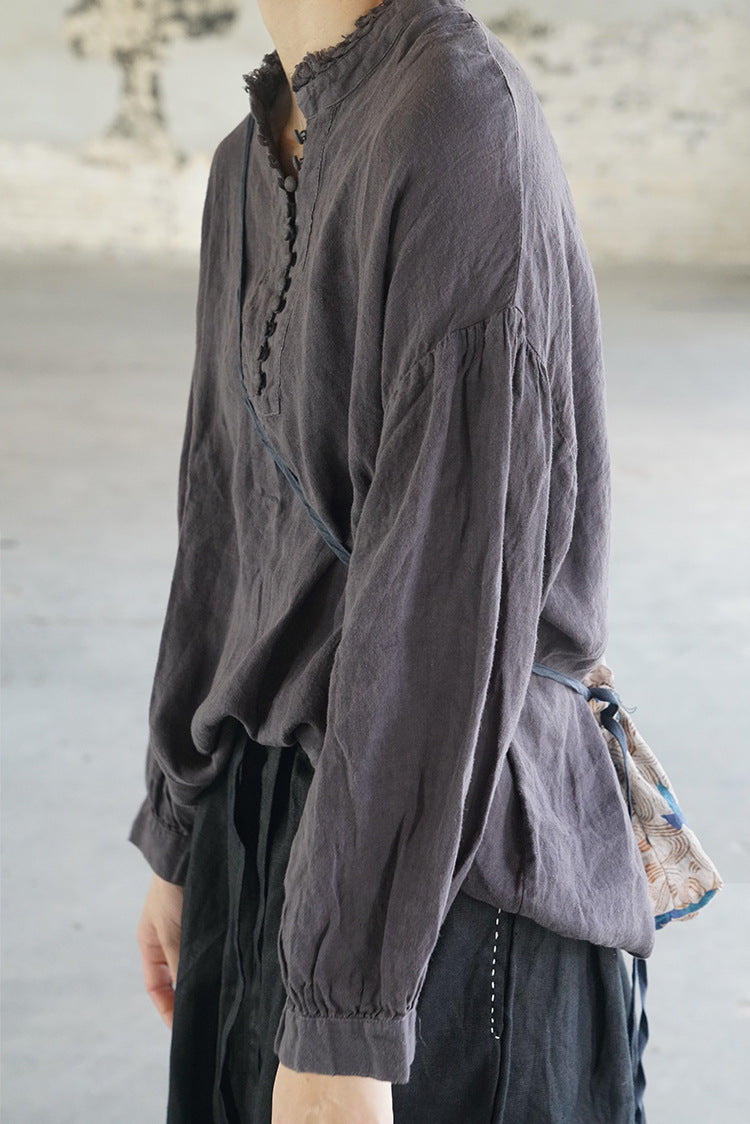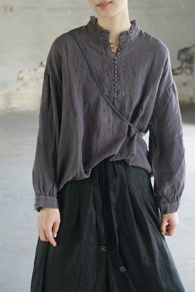 French Style Linen Top in Grey