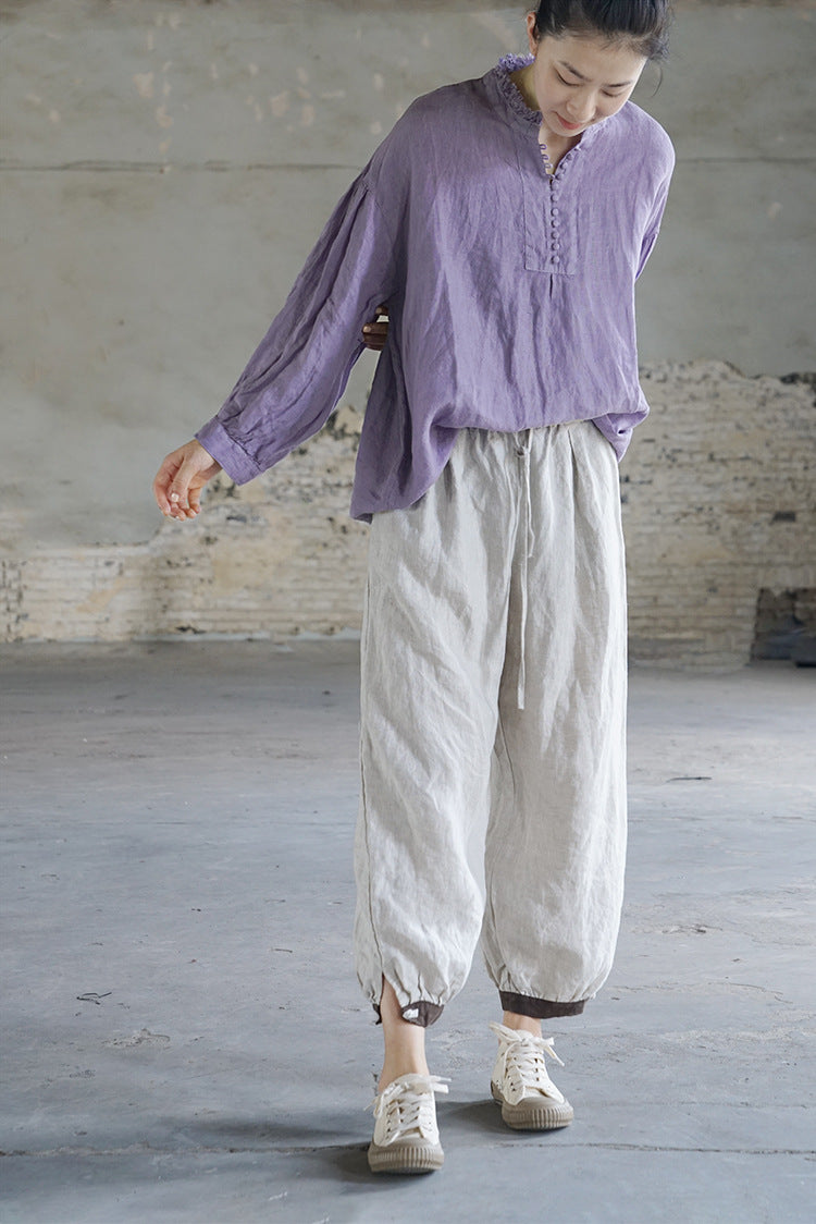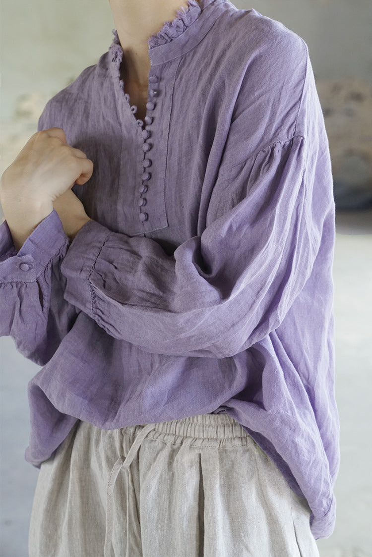 French Style Linen Top in Lavender