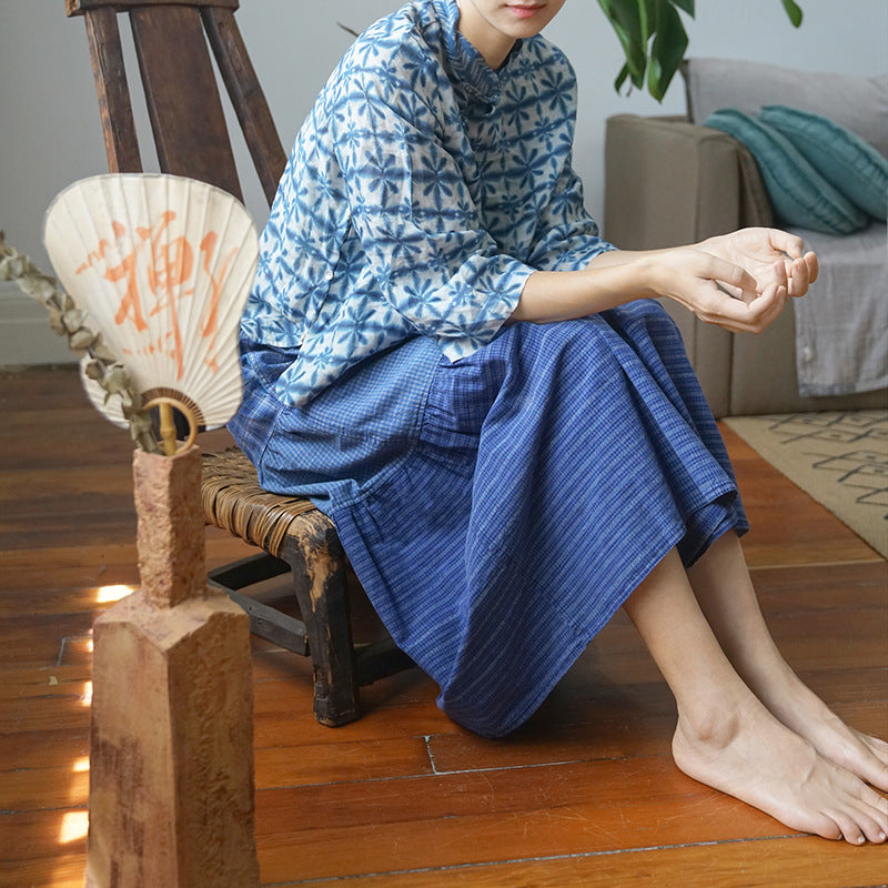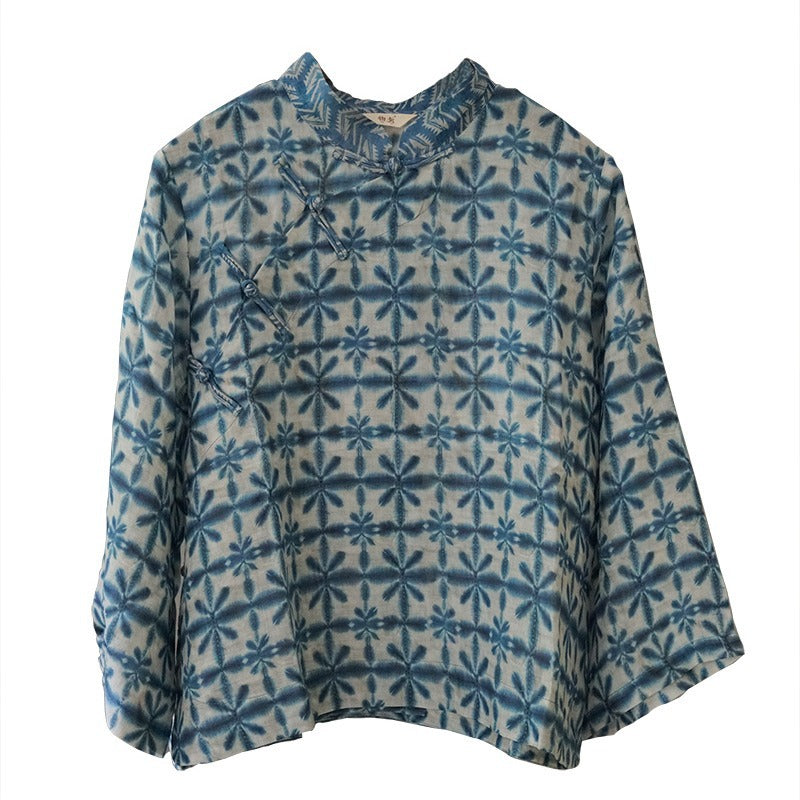 Abstract polka dot print cheongsam top. Chinese frog buttons; wide sleeves. Loose and comfortable.