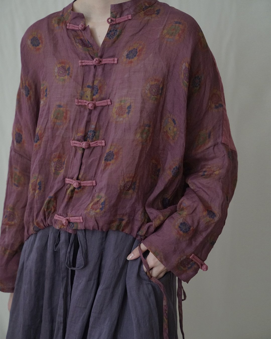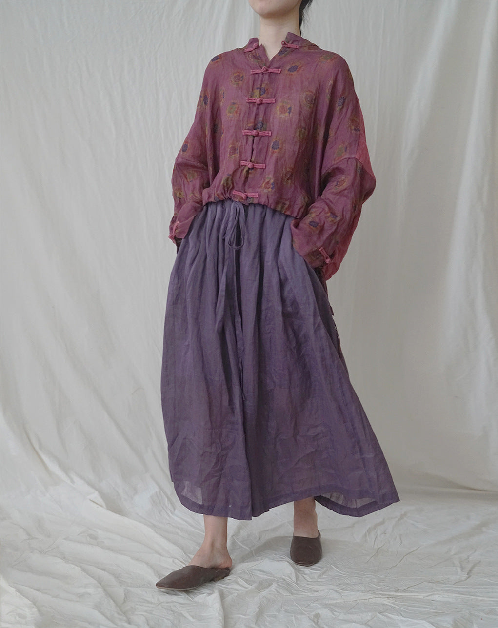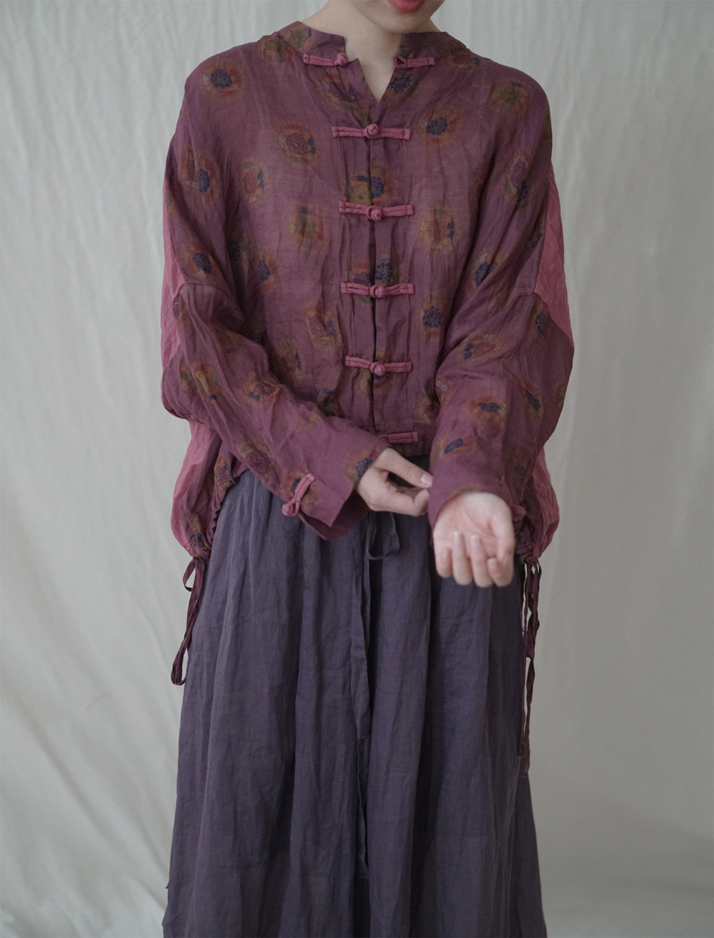 Purple Floral Cheongsam Qipao Top