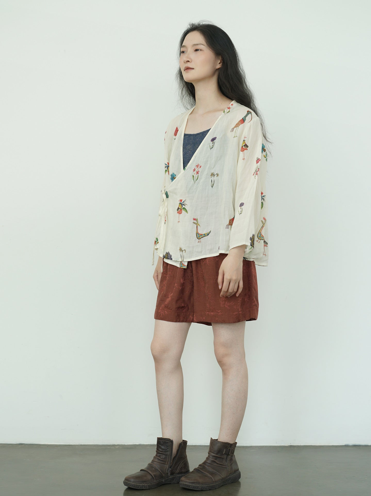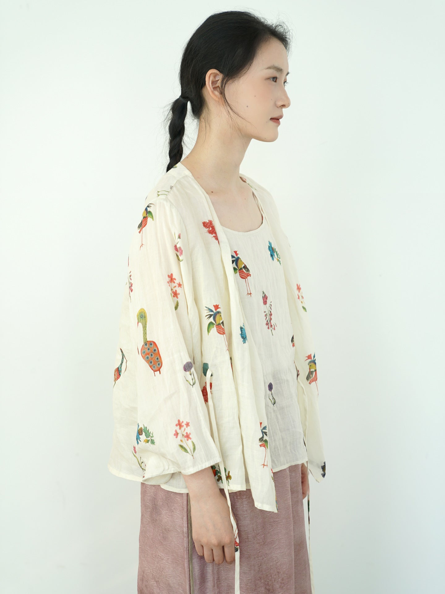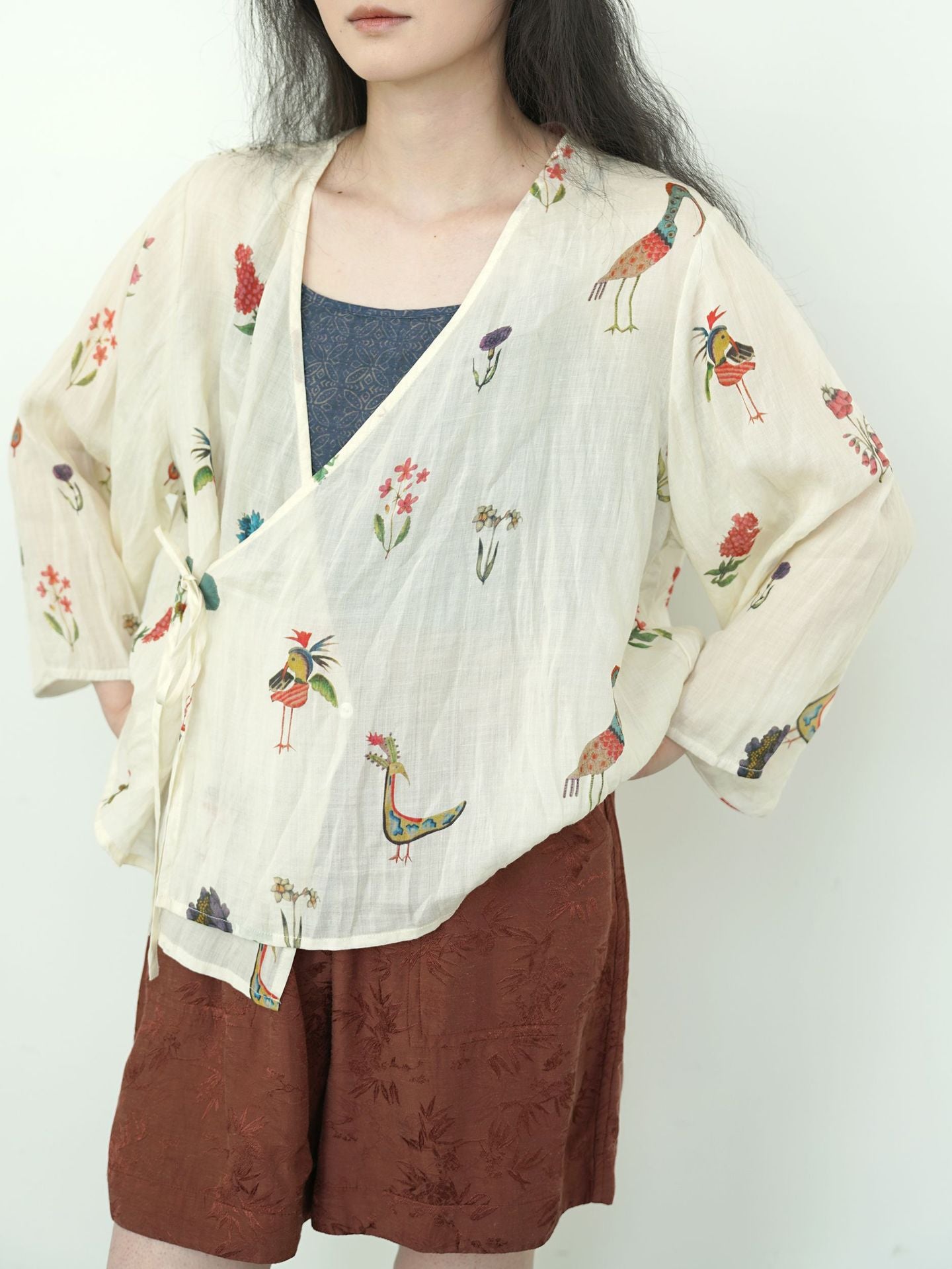Comfortable Cheongsam top, digital print on ramie fabric.