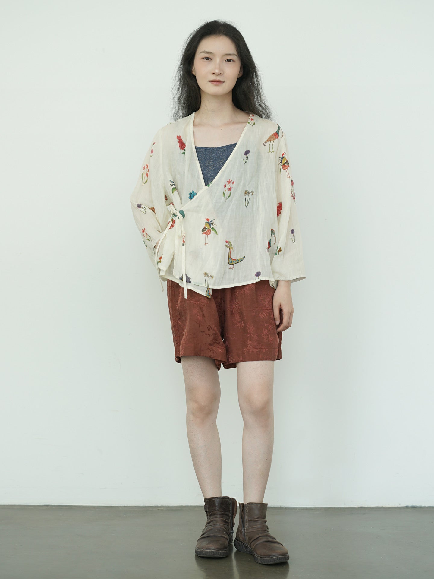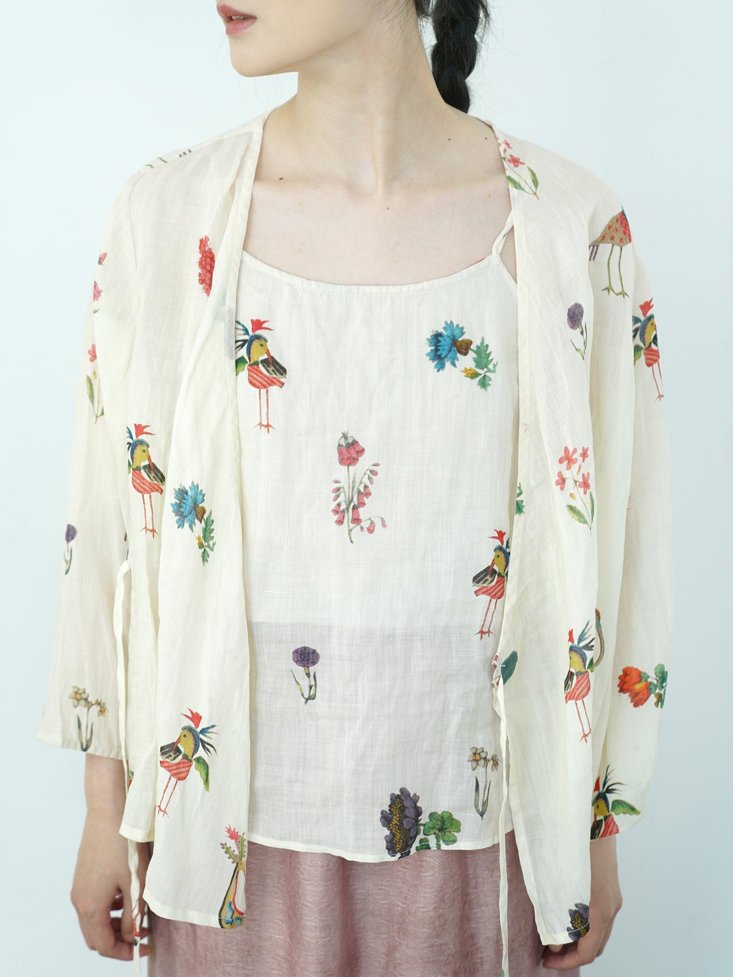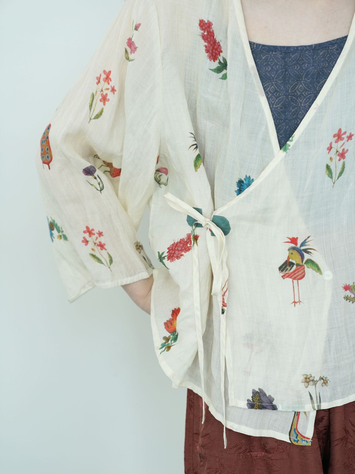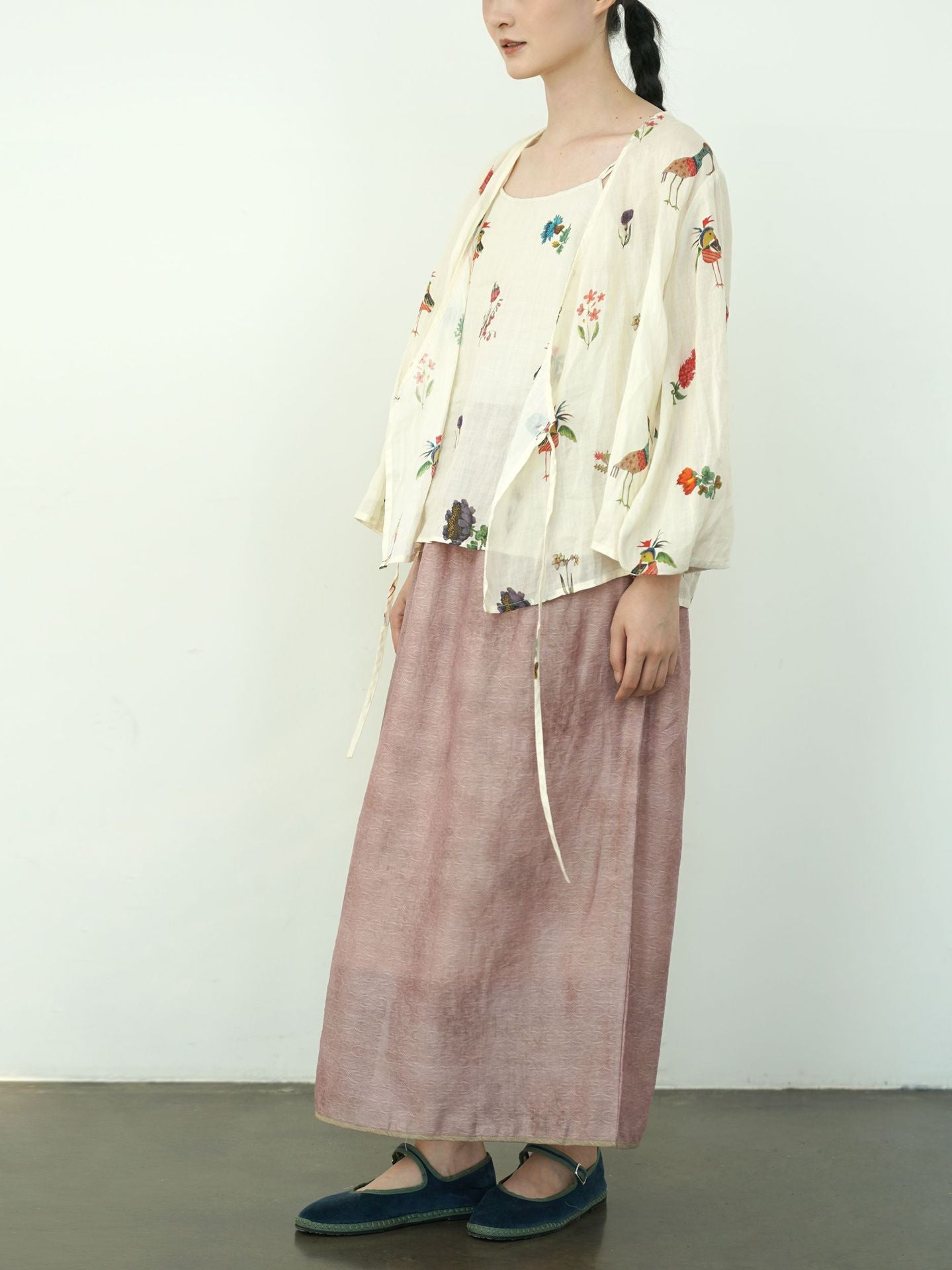 Comfortable Cheongsam top, digital print on ramie fabric.