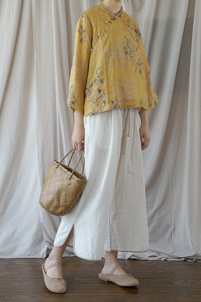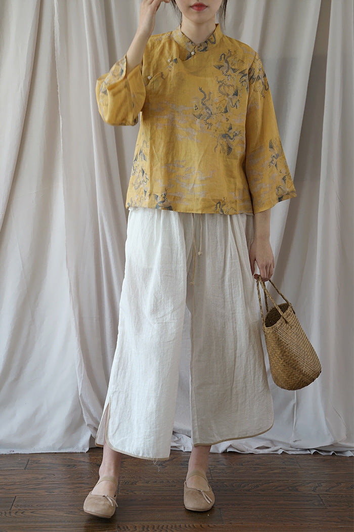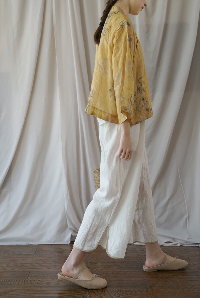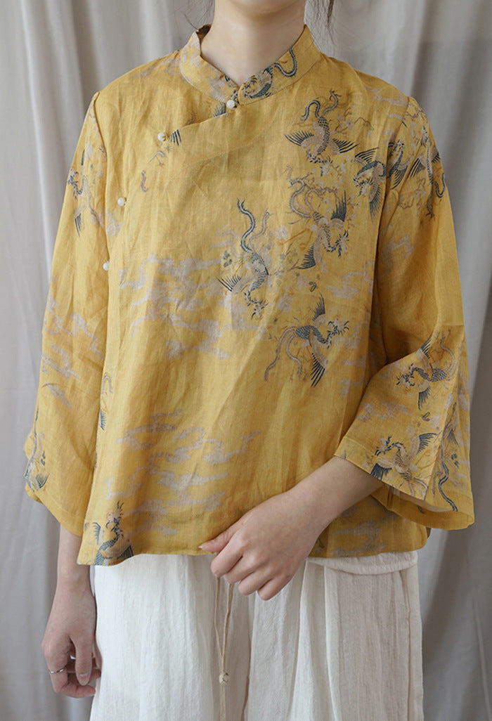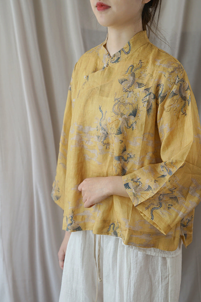 Yellow Dragon Print Cheongsam Top